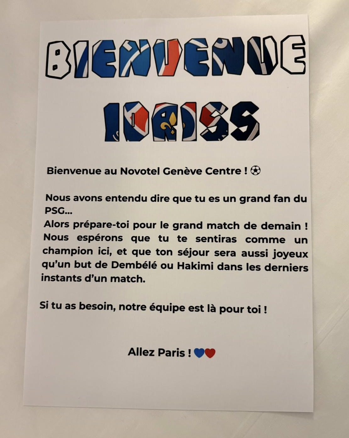 Sur le chemin de Paris, nous adressons un grand merci au Novotel Centre Genève, qui a réservé à Idriss un accueil personnalisé inoubliable.