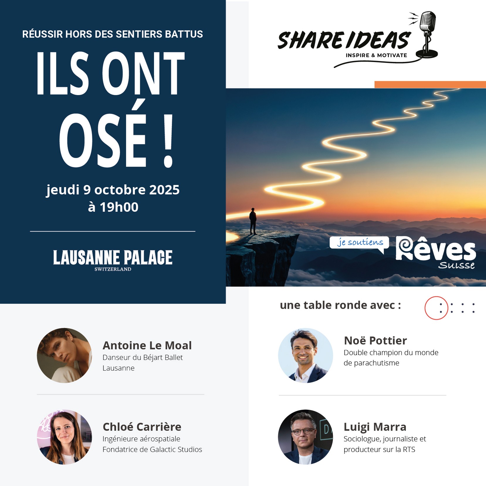 Venez vibrer, débattre et vous inspirer aux côtés de personnalités qui ont osé tracer leur propre chemin. En participant, vous soutiendrez les rêves des enfants.